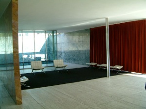 Transparence maximale avec ces nombreux murs vitrés. La structure se compose de 8 poteaux cruciformes qui soutiennent à eux seuls cet immense toit plat. Les murs, libérés de leur contrainte porteuse, ne servent qu’à structurer l’espace, reprenant l’adage minimaliste de l’architecte «Less is more».