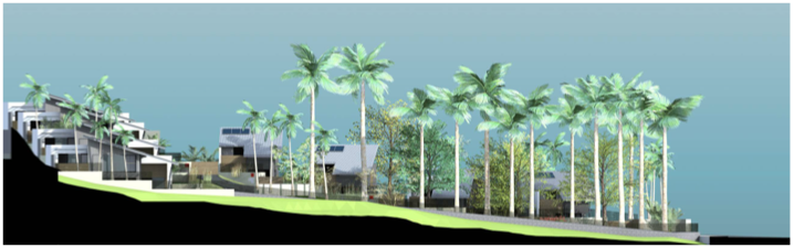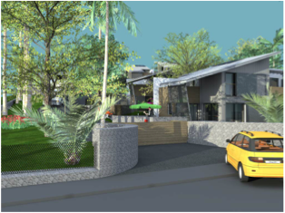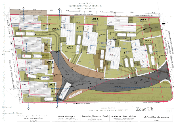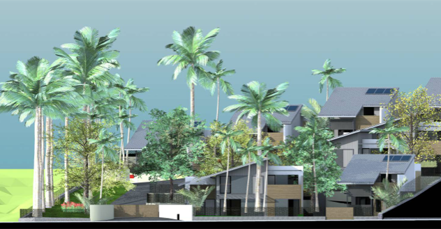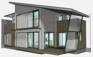 Les maisons viennent en limite parcellaire sur 2 côtés pour libérer une surface de jardin maximale à leur pied. Elles font ainsi office de clôture et de soutènement, réduisant d’autant les travaux du lot VRD. Bardage tôle et bois, larges ouvrants et larges débords de toits assurent à l’ouvrage pérennité et confort thermique. Les volumes sont simples, la pente et l’exposition du toit optimales pour les panneaux solaires.